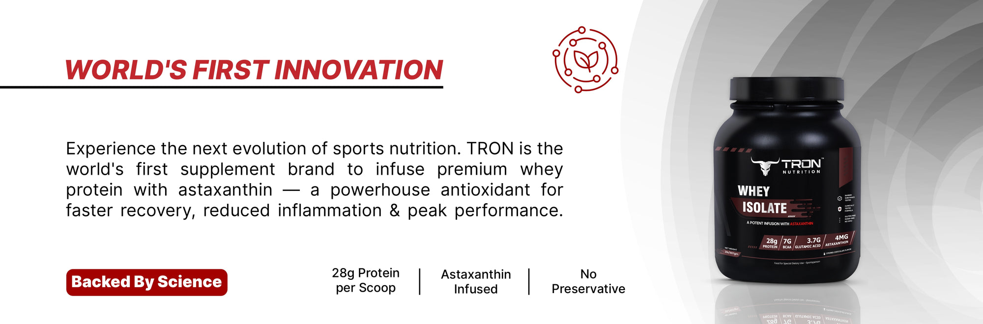 Tron Nutrition is a gym supplements brand that created the world’s first whey protein infused with astaxanthin, a powerful antioxidant known for supporting recovery and reducing exercise-induced oxidative stress.