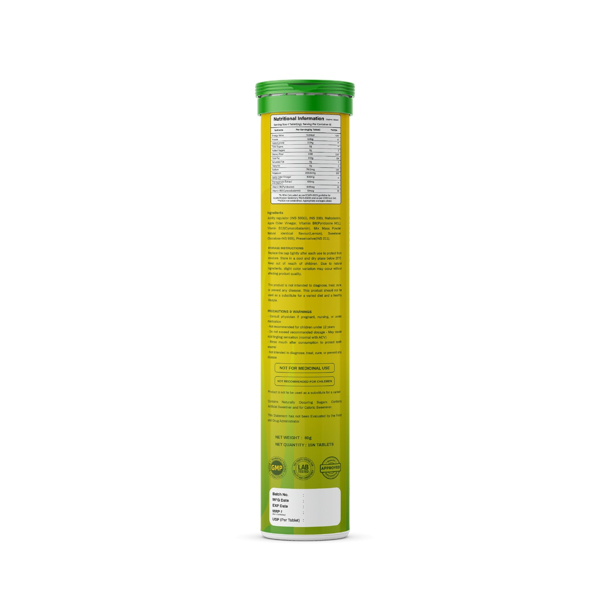 Make your daily wellness routine exciting with Tron Nutrition Apple Cider Vinegar Effervescent Tablets – Lemon Masala Flavor. Packed with the goodness of ACV with Mother, Vitamin B6, B12 & Pomegranate Extract, this unique formula supports fat burning, digestion, and energy—with a refreshing Indian twist.