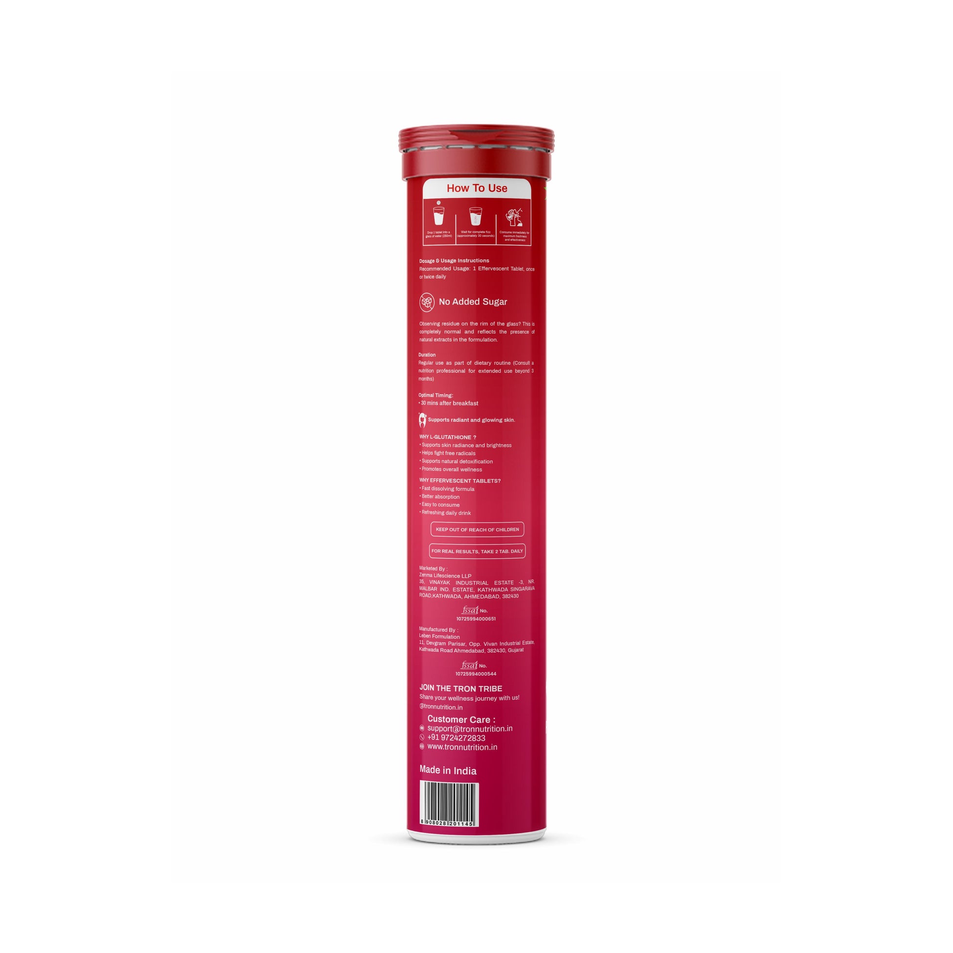 Upgrade your daily routine with Tron Nutrition L-Glutathione Reduced Effervescent Tablets, specially designed to support skin glow, detoxification, and overall wellness. Infused with L-Glutathione, Vitamin C, and Biotin, this powerful formula helps you achieve radiant skin and healthier hair from within.