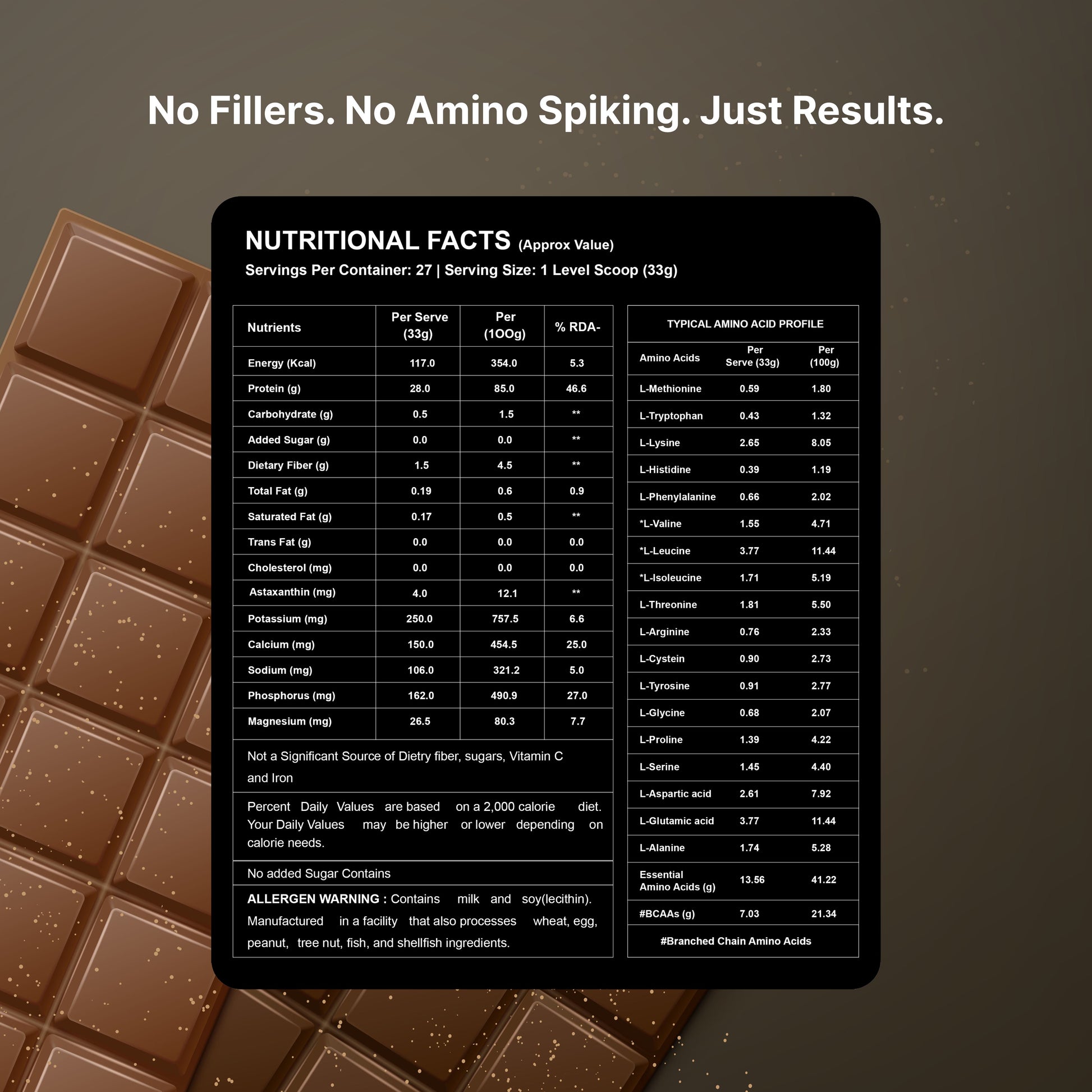 28g Protein | 7g BCAA | 3.7g Glutamic Acid | 4mg Astaxanthin