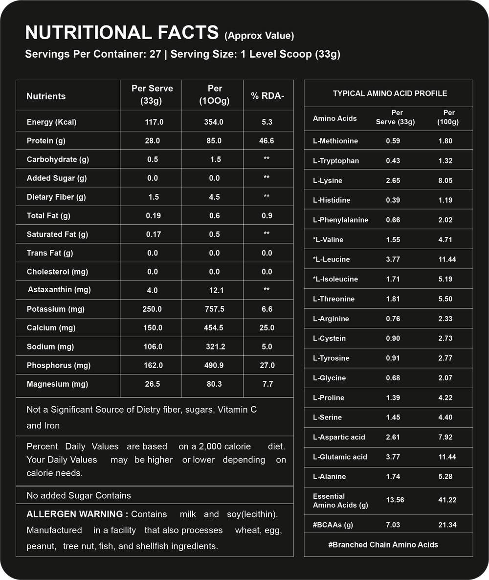 What makes us different: The purest protein available, amplified with Astaxanthin for superior results. Get lean, defined muscle with faster recovery and less inflammation. No bloating, no fillers—just results.
