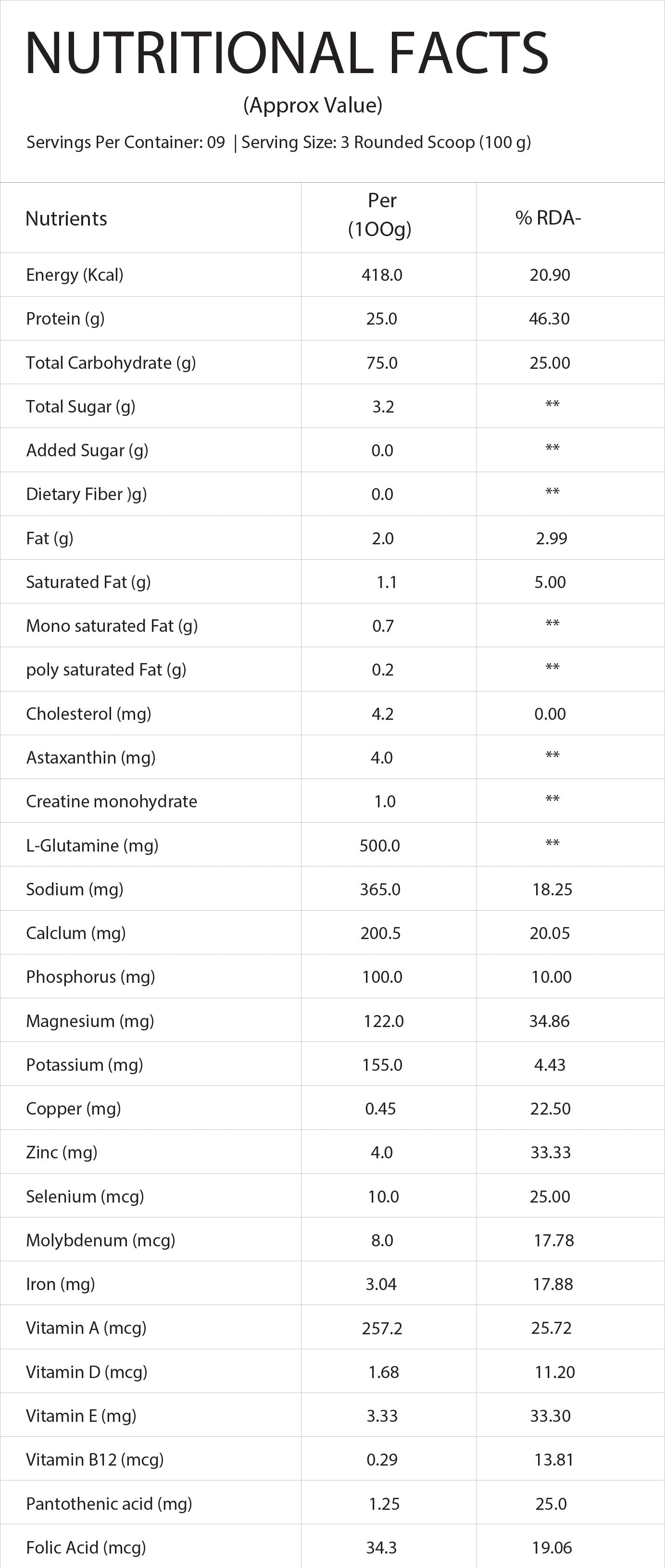 Enhanced with Creatine Monohydrate (1 g) for strength and power, L-Glutamine (500 mg) for muscle recovery, and Astaxanthin (4 mg) for antioxidant support, this gainer goes beyond basic calories.